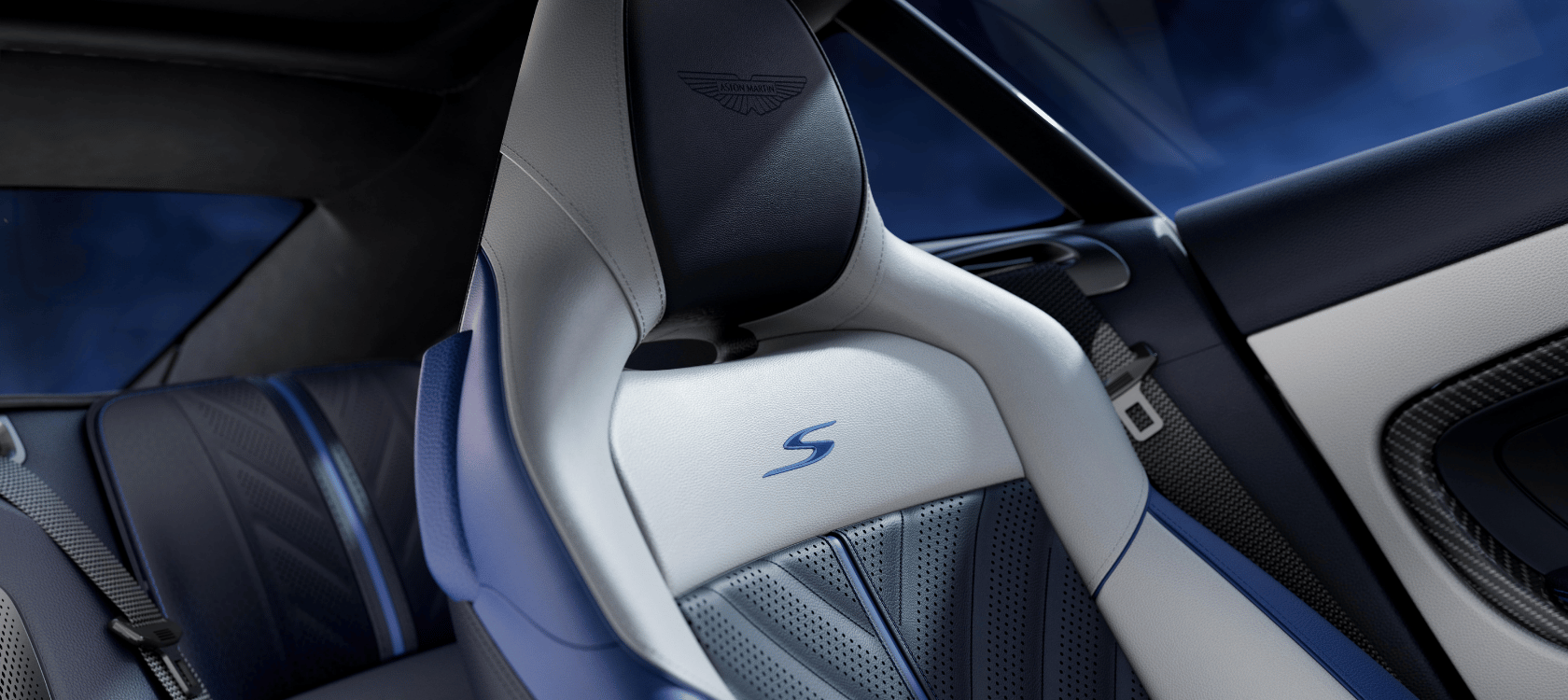Inside, you can feel the combination of British craftsmanship and modern technology. The driver-focused instrument panel and the cabin, surrounded by elegant lines, make you feel like you're in an Aston Martin in every detail. The S-logo seats, stitched with 2,500 stitches, symbolize the brand's attention to detail. The Accelerate and Inspire S themed interior designs, featuring a combination of Alcantara®️ and semi-aniline leather, bring together both sportiness and luxury. The optional Bowers & Wilkins sound system, carbon fiber interior trim, and red accents of the S Interior Highlights package take the DB12 S's personalization options to the next level.